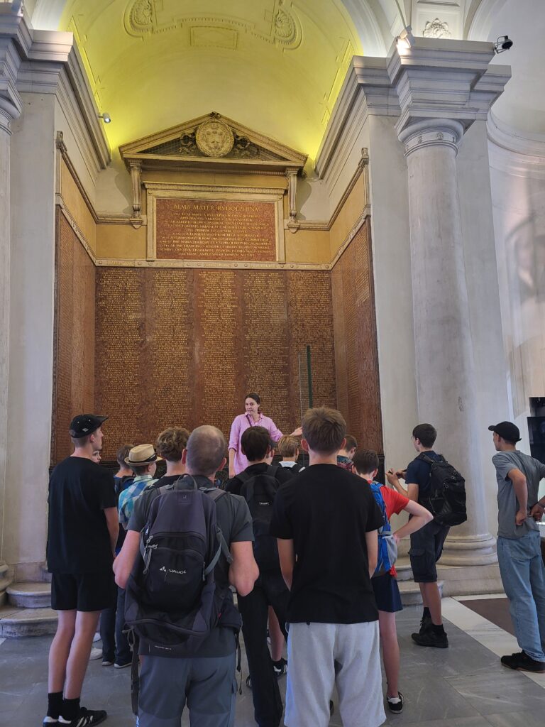 Vom 30. August bis 6. September 2025 war unsere Klasse 9/1 auf großer Fahrt in die österreichische Hauptstadt. Die Reise fand im Rahmen der Aktion „Europas Jugend lernt Wien kennen“ des österreichischen Bildungsministeriums statt. Auf dem Programm standen zahlreiche Höhepunkte: Besuche im Wien Museum, im Naturhistorischen und im Technischen Museum, Führungen durch den Stephansdom , die Kaiserliche Schatzkammer, die Nationalbibliothek, die Albertina, das Parlament und Schloss Schönbrunn sowie ein Besuch der Karlskirche. So konnten wir Geschichte, Kunst, Kultur und Politik hautnah erleben. Natürlich blieb auch Zeit, Wien auf eigene Faust zu erkunden oder in der Donau unter der Aufsicht unseres Rettungsschwimmers Herrn Becker zu baden und somit gemeinsame Erlebnisse zu sammeln und die Klassengemeinschaft zu stärken. Am Ende waren sich alle einig: Diese Studienfahrt hat uns nicht nur Wissen vermittelt, sondern auch Erinnerungen geschaffen, die uns lange begleiten werden.